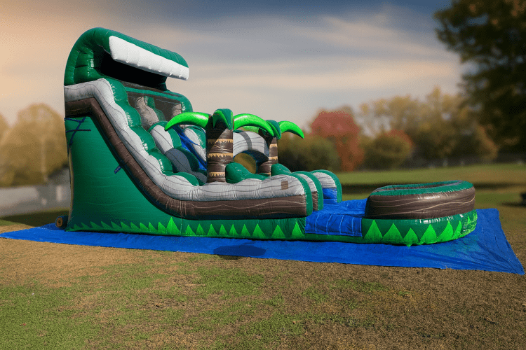 Built from commercial-grade, lead-free vinyl, the Emerald Crush Tsunami is made for safety, durability, and all-day performance. Its bold tropical colors and eye-catching design make it a standout attraction at any celebration.